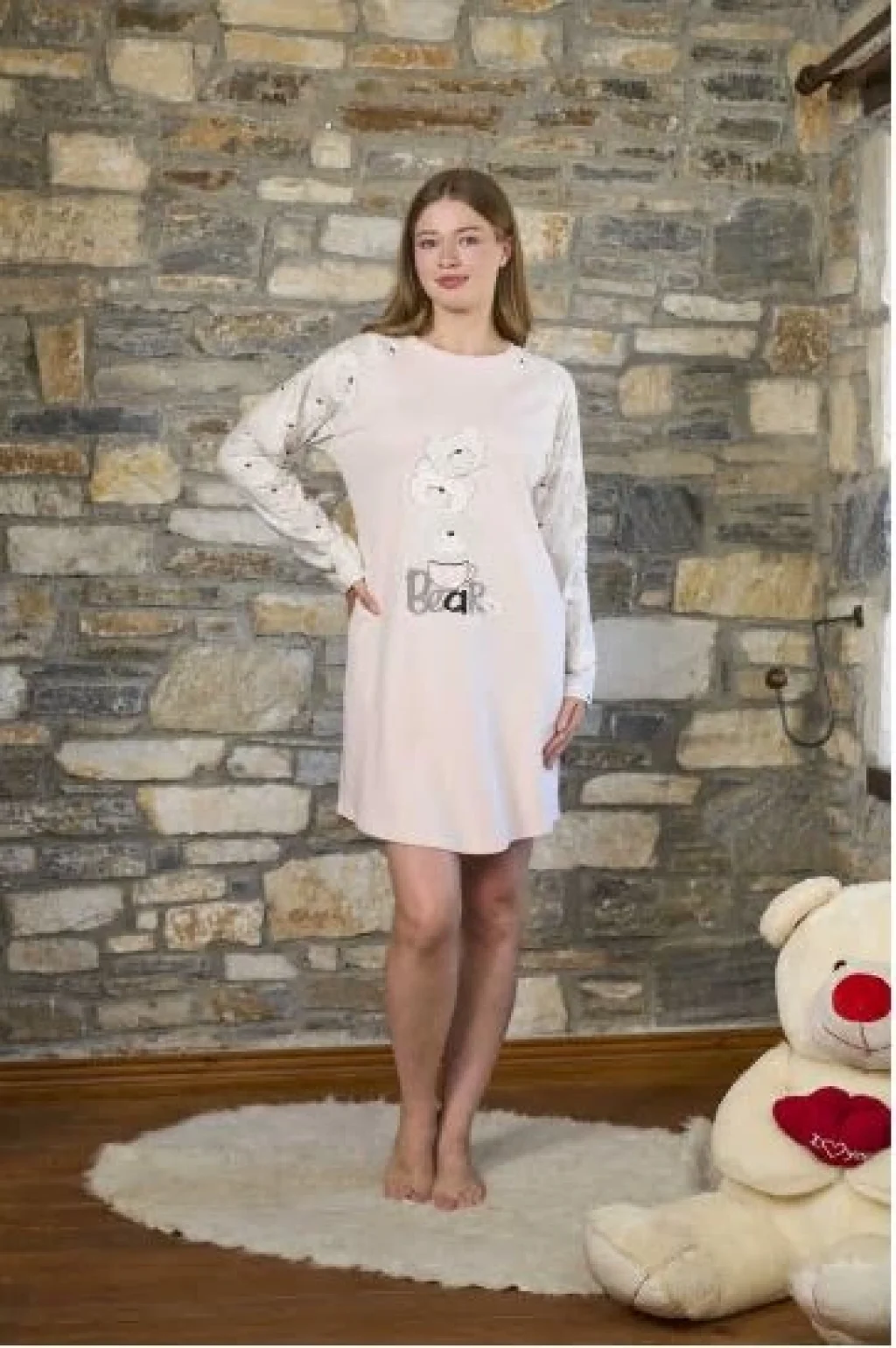 Aqua 26236 Uzun Kol Ayıcık Baskılı Gecelik