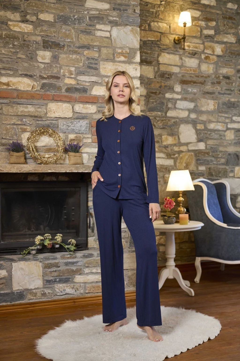 Aqua 26279 Önden Düğmeli Uzun Kol Kadın Pijama