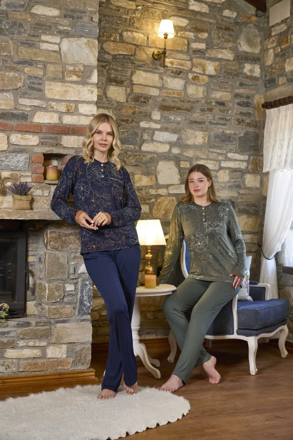 Aqua 26388 Kadın Battal Desenli Uzun Kol Pijama Takım