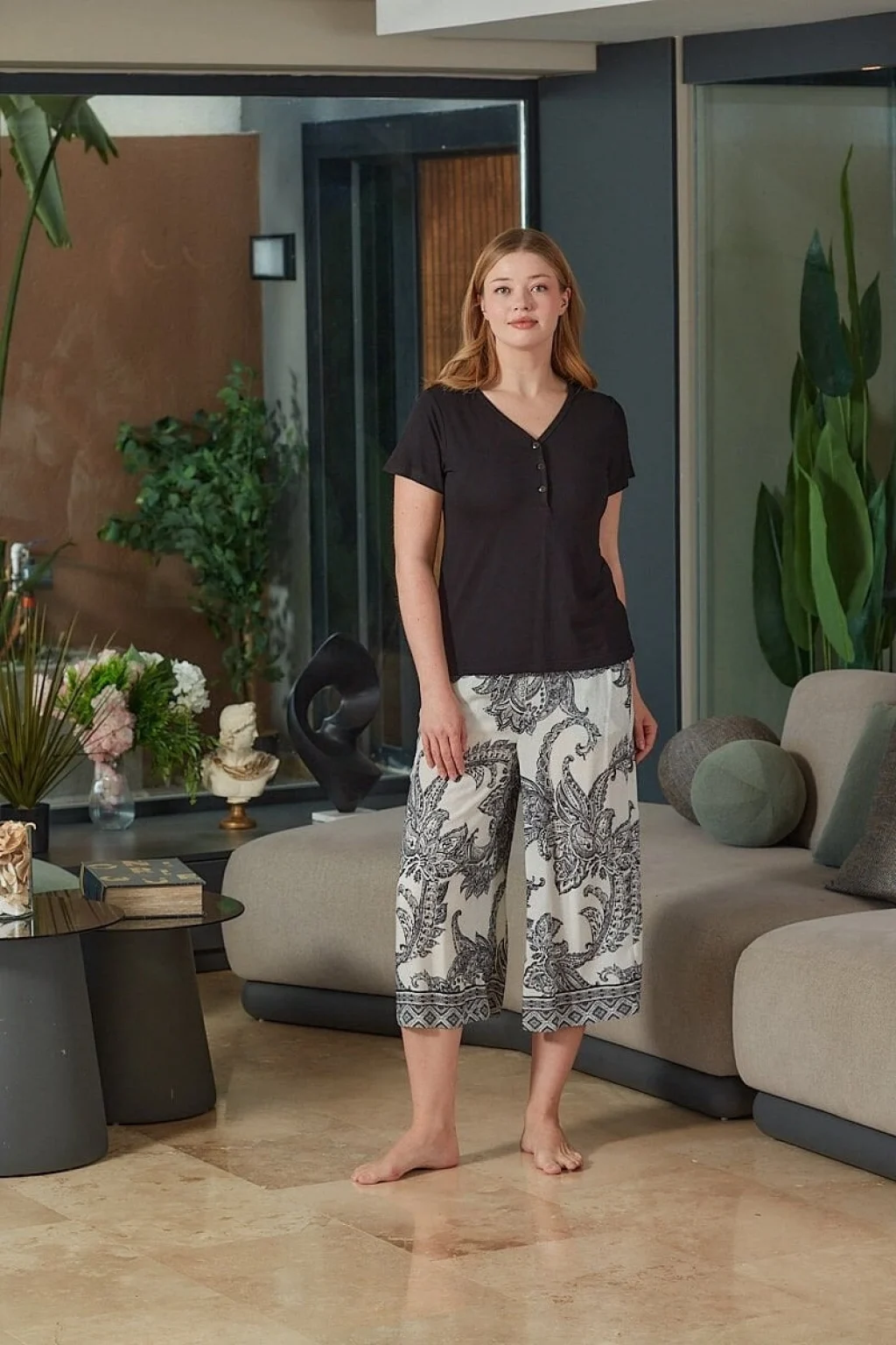 PJS 29049 Kadın Düğmeli Pijama Takım