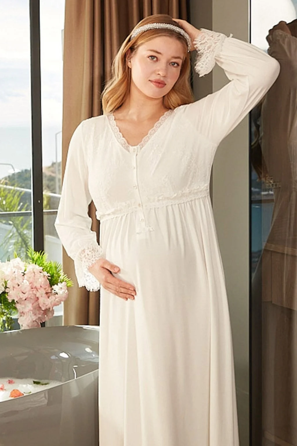 Aqua 26301 Dantel Detay Lohusa Gecelik