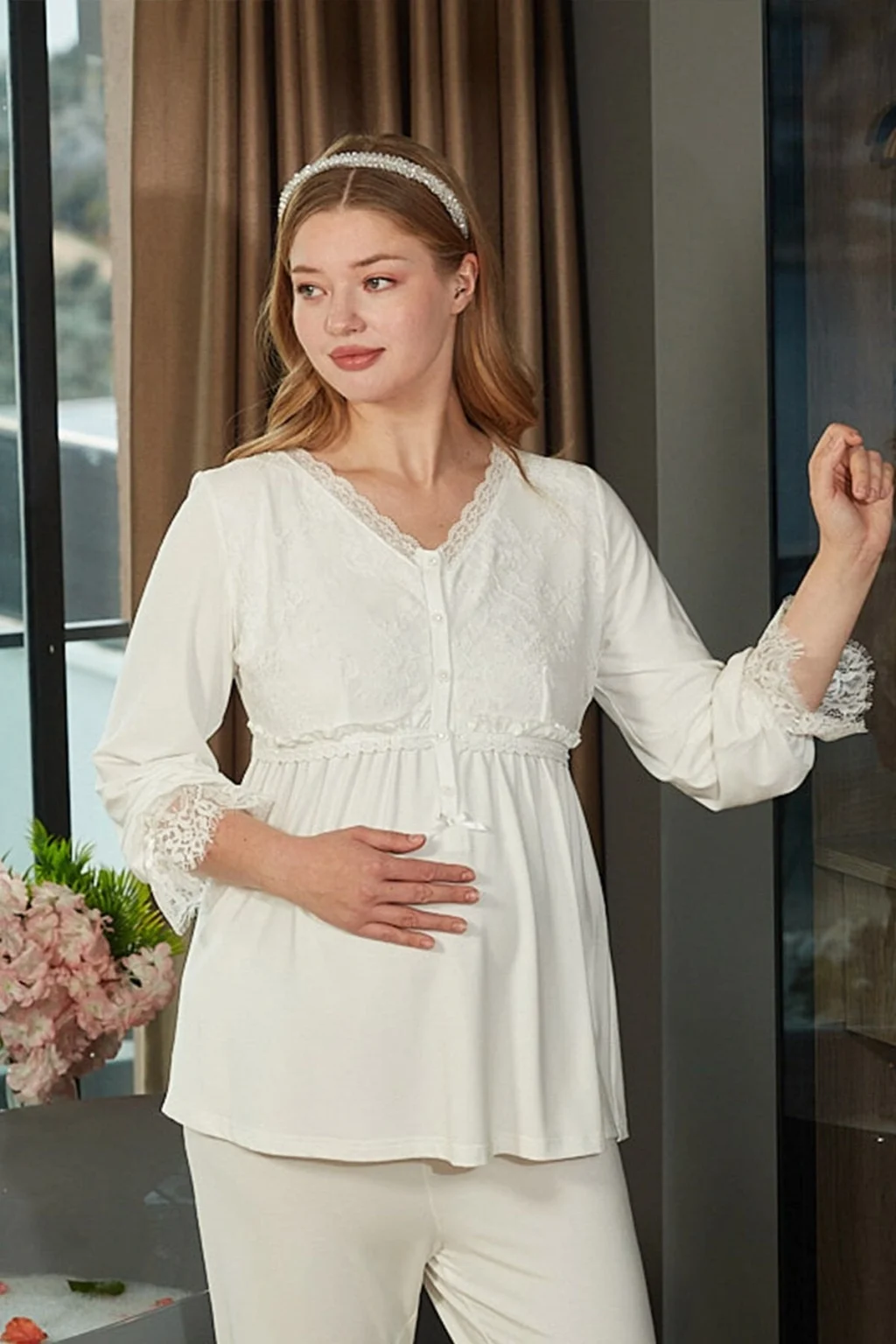 Aqua 26305 Dantel Detaylı Lohusa Pijama Takımı