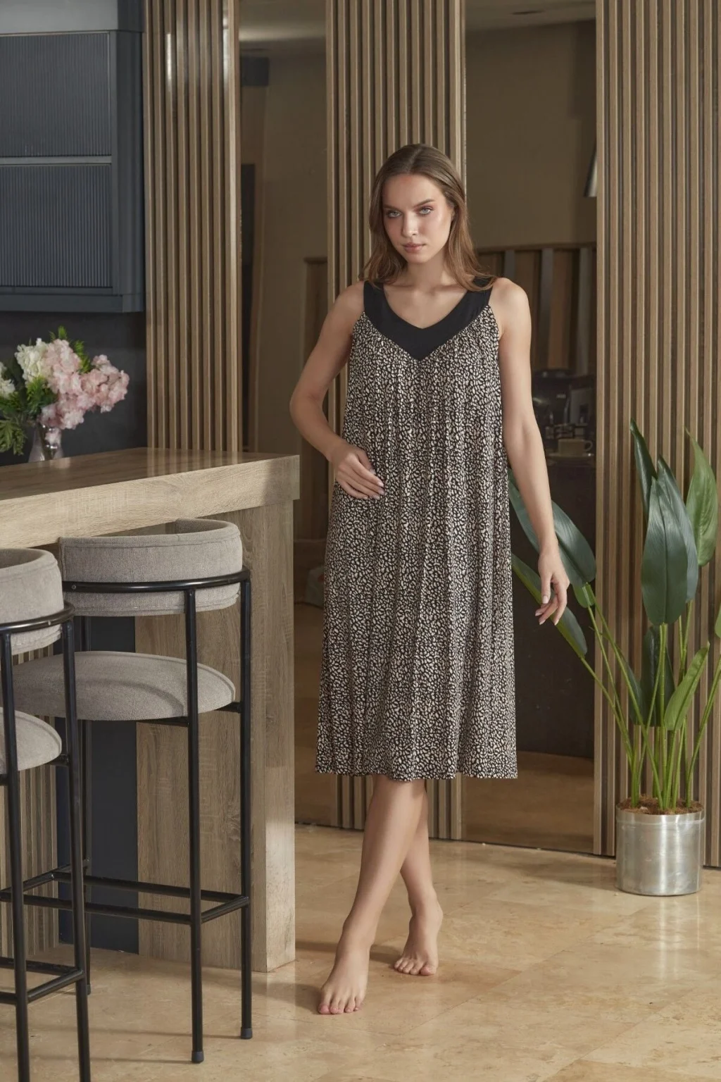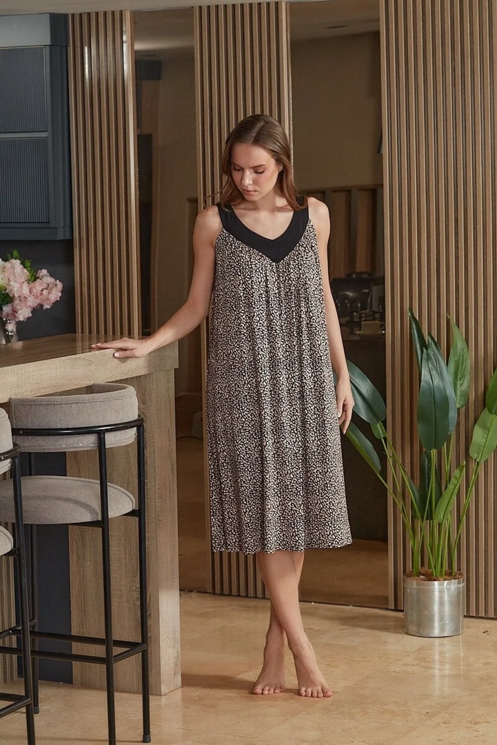 Nightlight 3809 Sırt Dekolteli Leopar Saten Gecelik