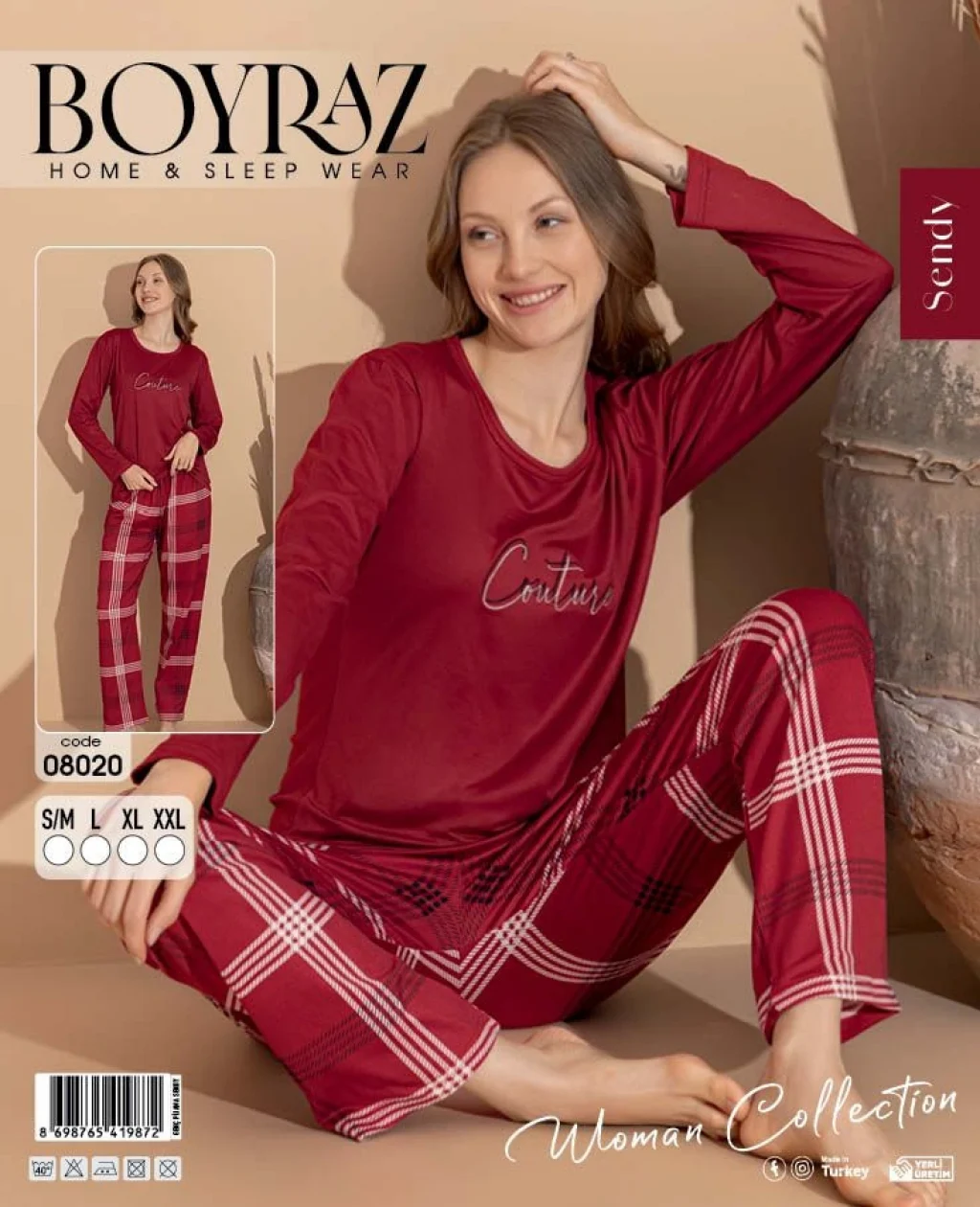 Boyraz 08020 Kadın Sendy Kumaş Uzun Kol Pijama Takımı