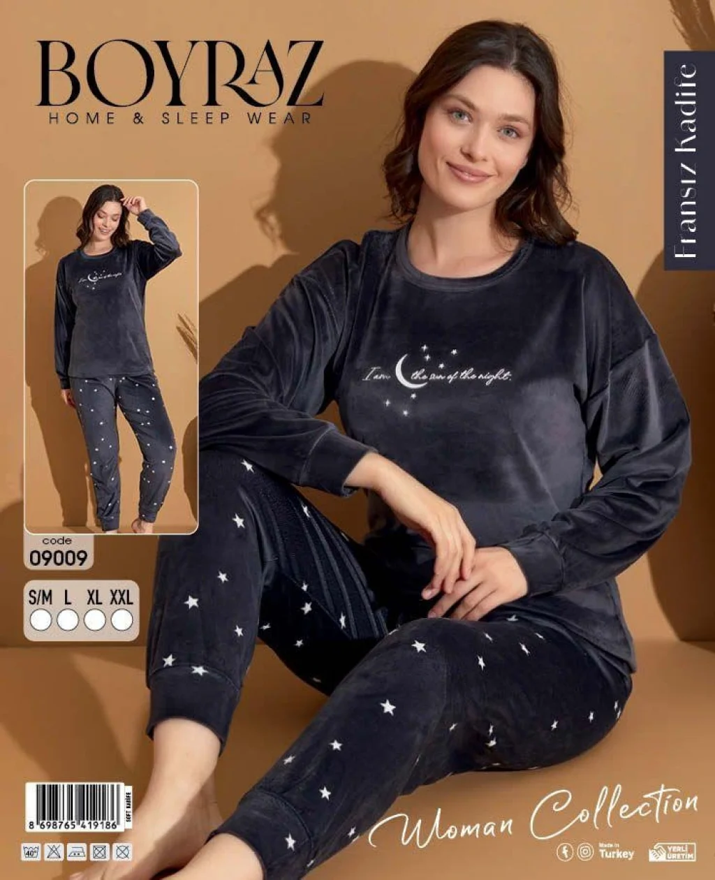 Boyraz 09009 Fransız Kadife Kumaş Uzun Kol Pijama Takımı