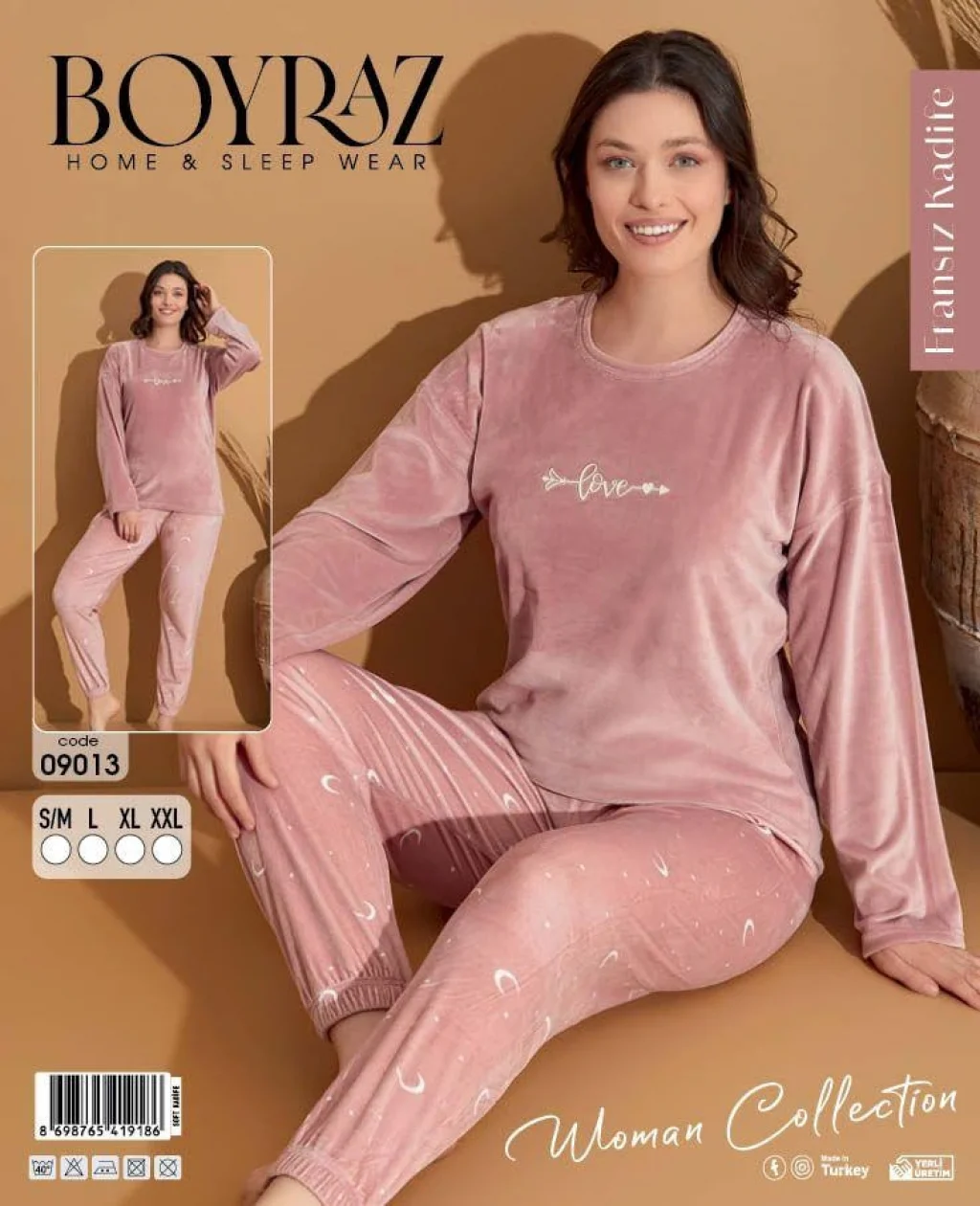 Boyraz 09013 Fransız Kadife Kumaş Uzun Kol Pijama Takımı