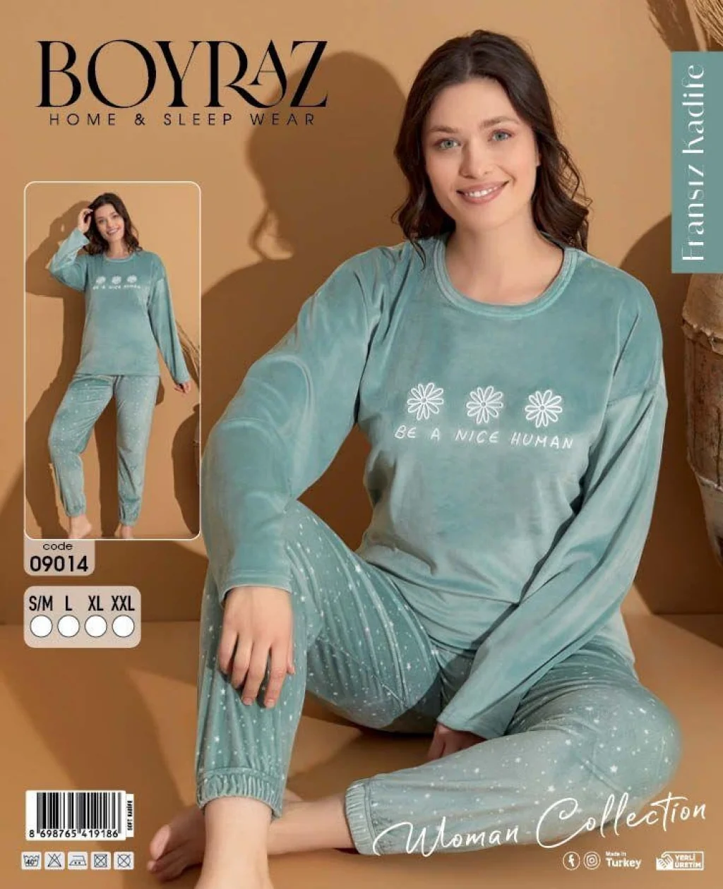 Boyraz 09014 Fransız Kadife Kumaş Uzun Kol Pijama Takımı