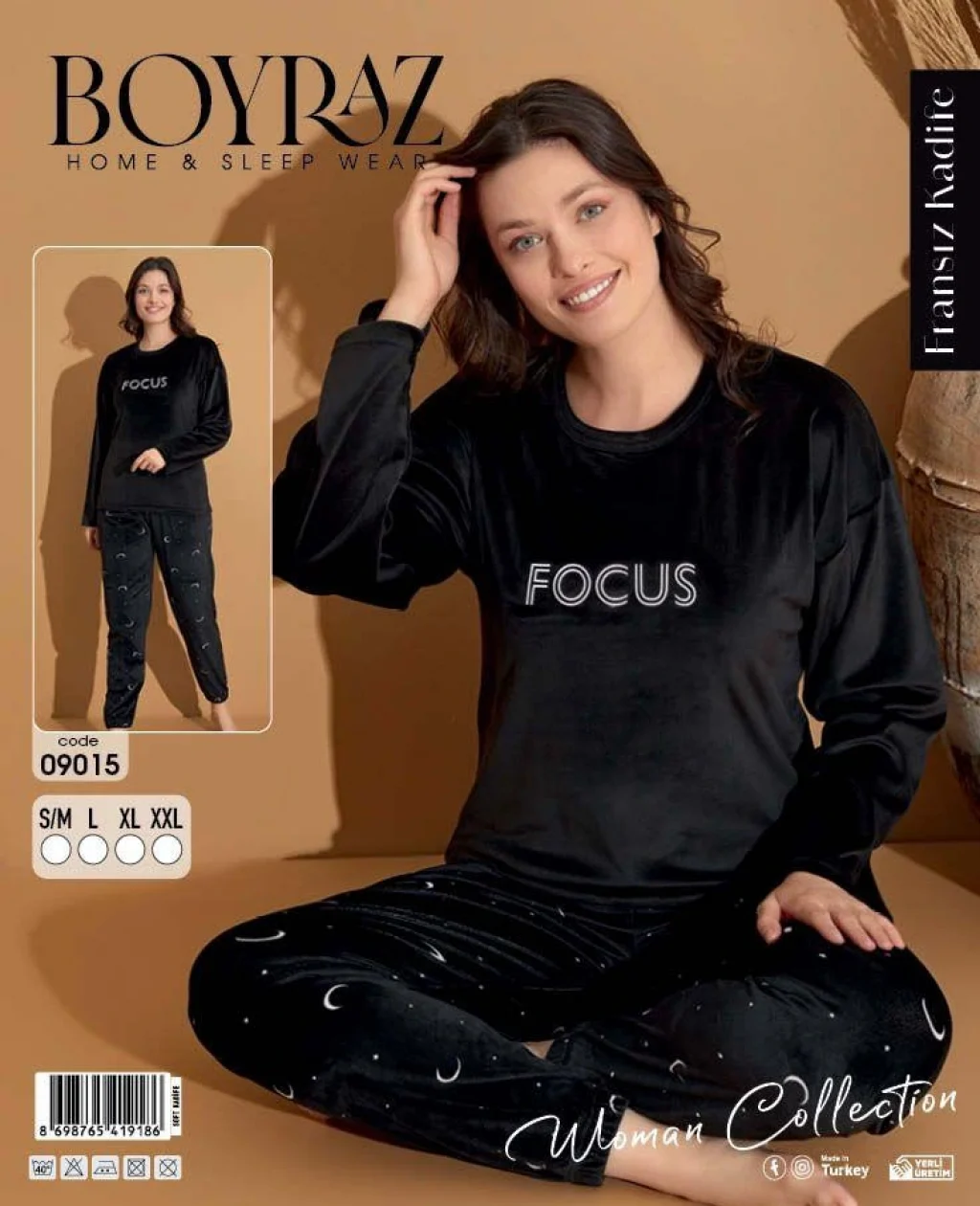 Boyraz 09015 Fransız Kadife Kumaş Uzun Kol Pijama Takımı