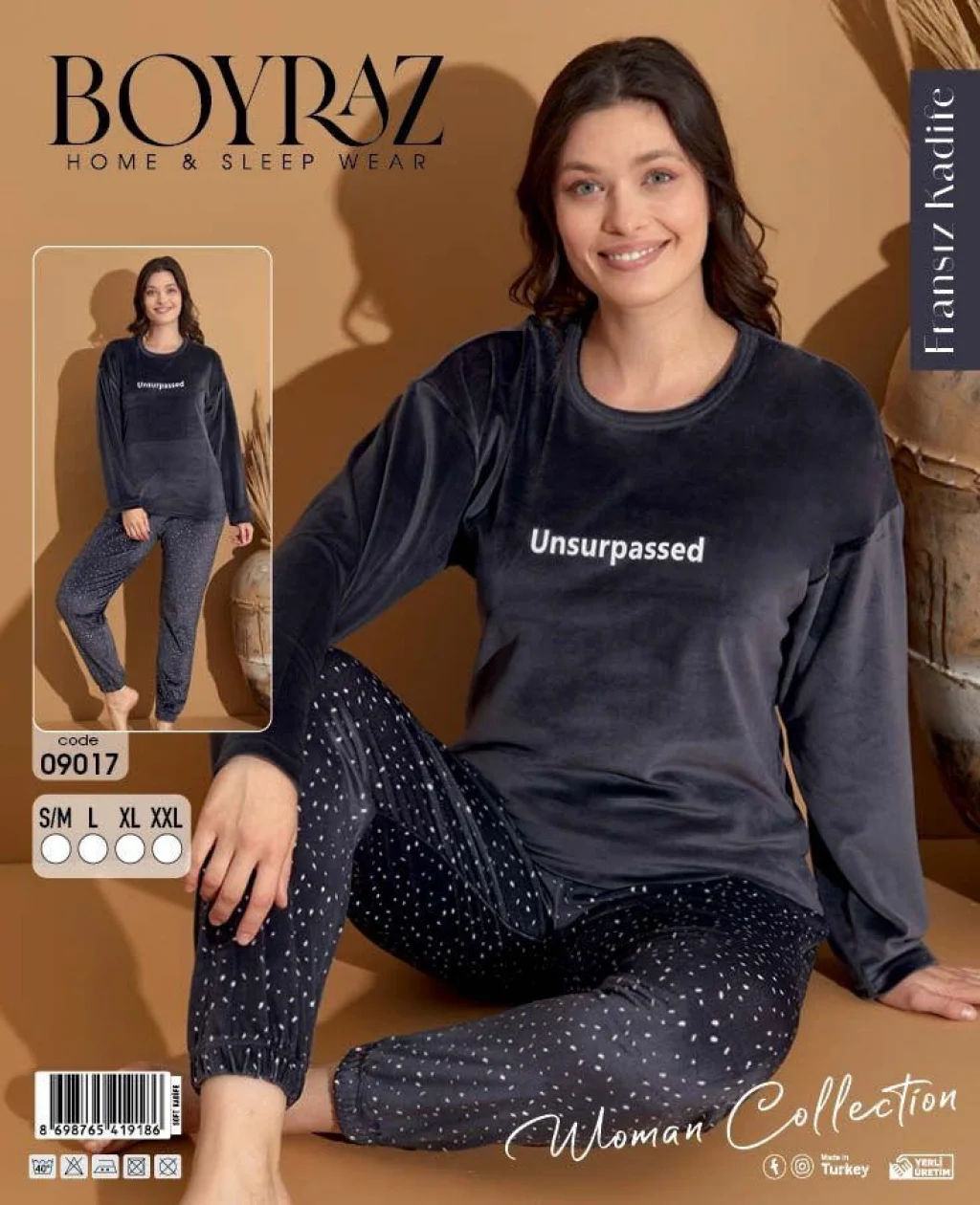 Boyraz 09017 Fransız Kadife Kumaş Uzun Kol Pijama Takımı