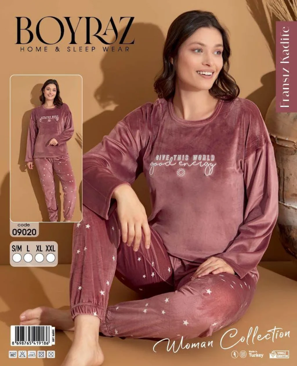 Boyraz 09020 Fransız Kadife Kumaş Uzun Kol Pijama Takımı