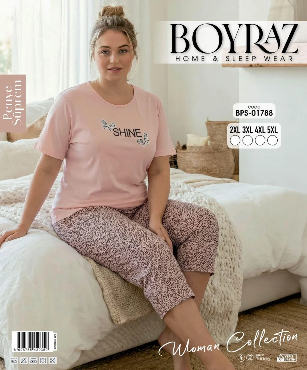Boyraz BPS-01788 Kadın Battal Kısa Kol Kapri Takım