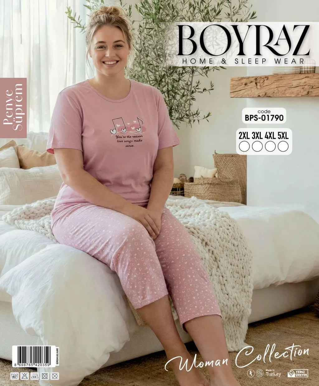 Boyraz BPS-01790 Kadın Battal Kısa Kol Kapri Takım