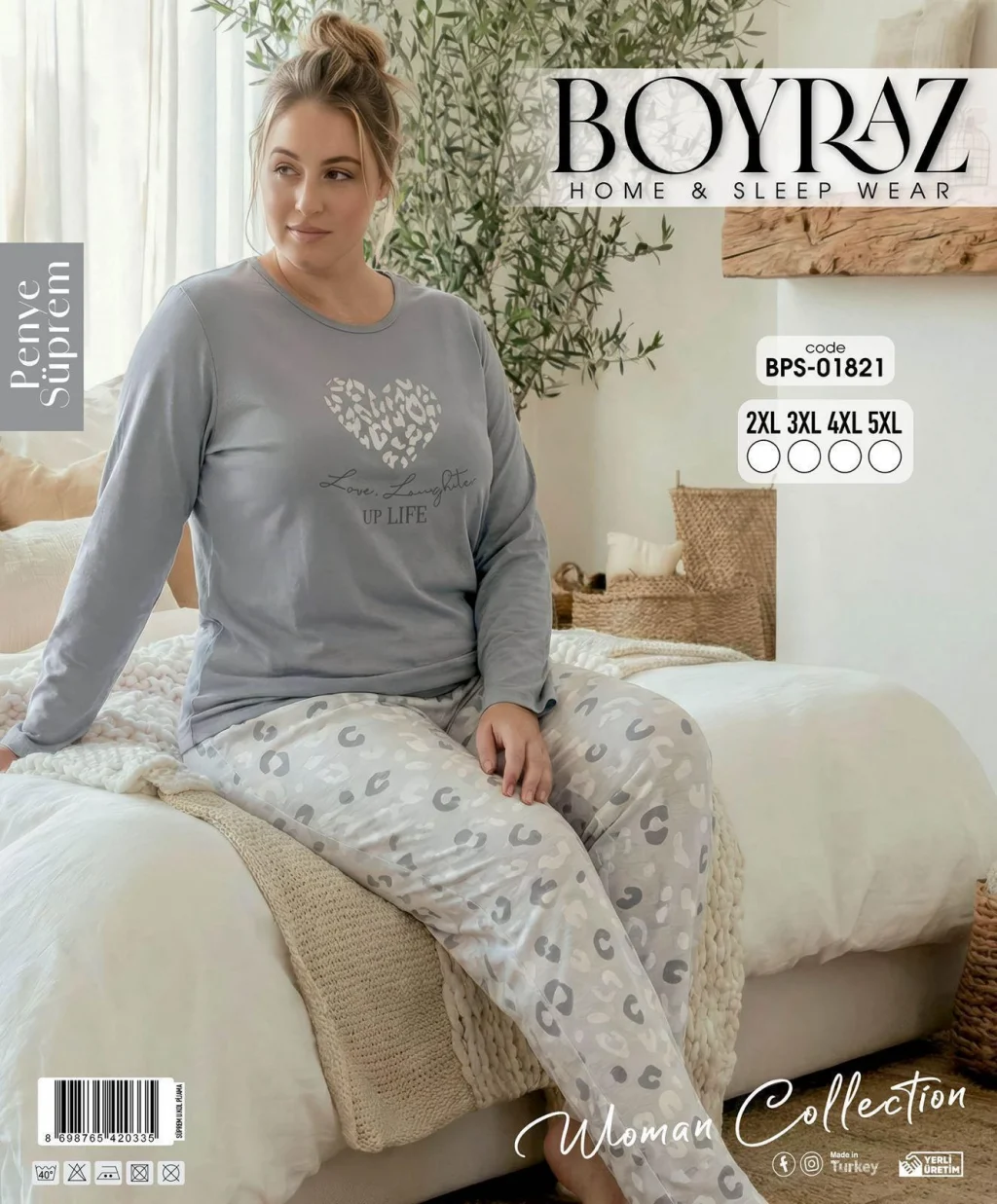 Boyraz BPS-01821 Kadın Battal Uzun Kollu Pijama Takımı