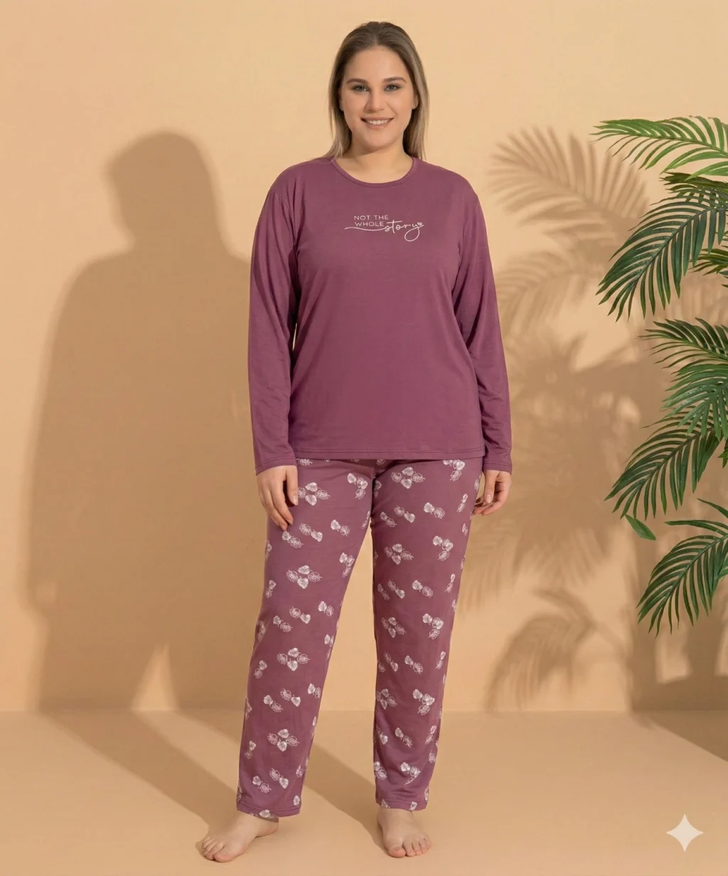 Aqua 26393 Kadın Battal Desenli Uzun Kol Pijama Takımı