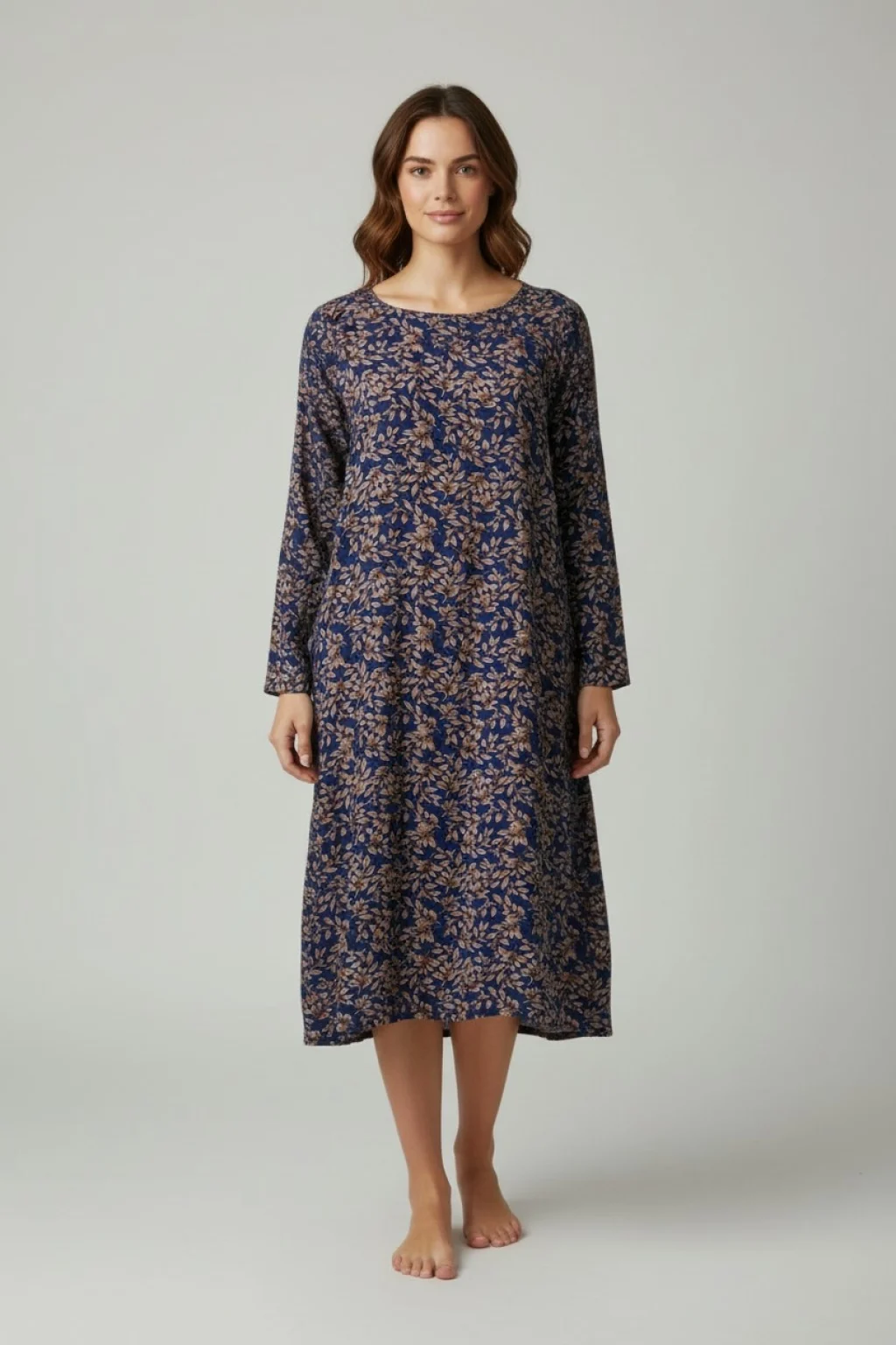 Aqua 26346 Çiçek Desenli Uzun Kol Gecelik