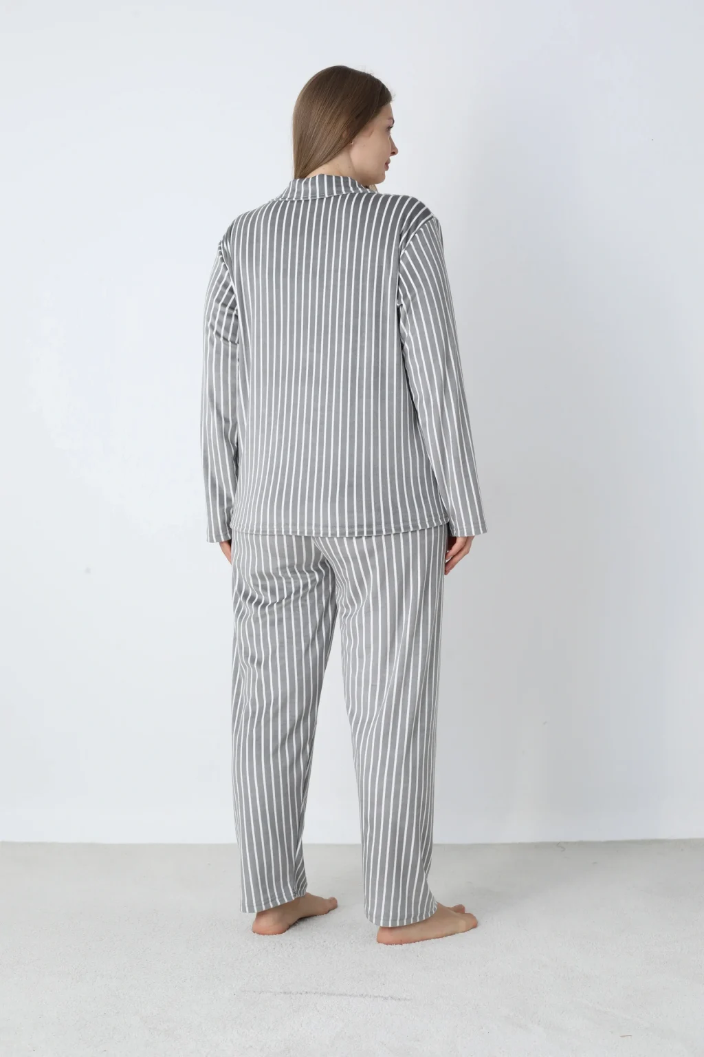 Estiva 25370 Gömlek Yaka Battal Kadife Pijama Takımı