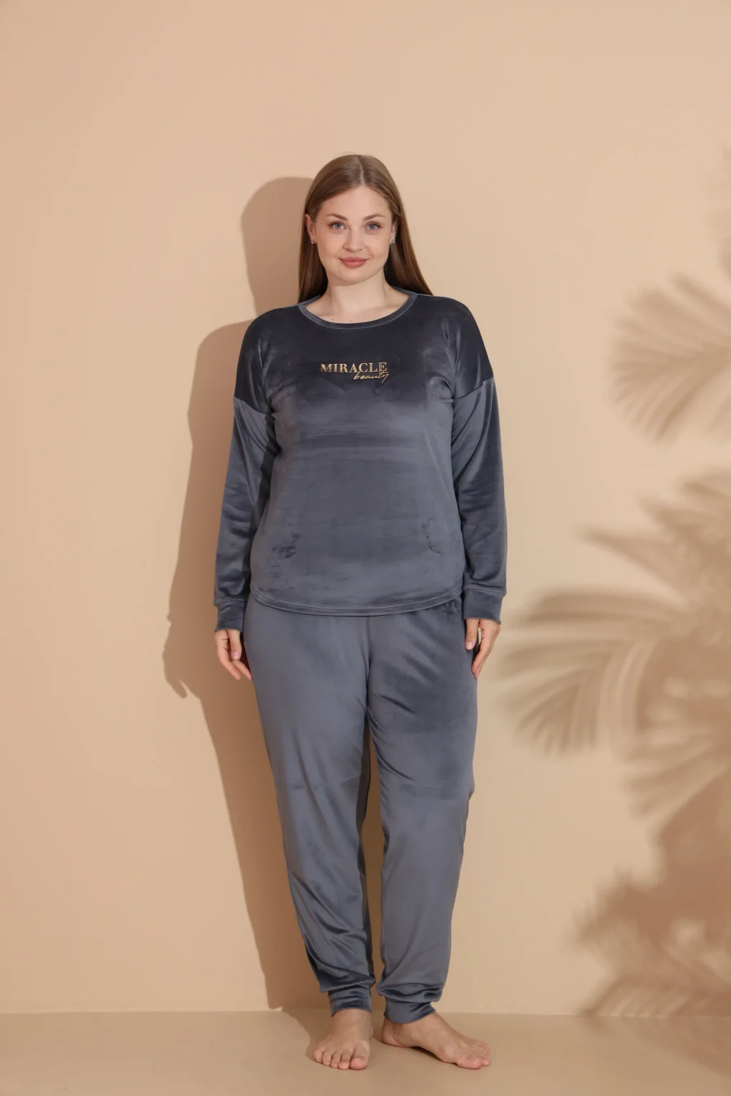 Estiva 25393 Uzun Kol Battal Kadife Pijama Takımı