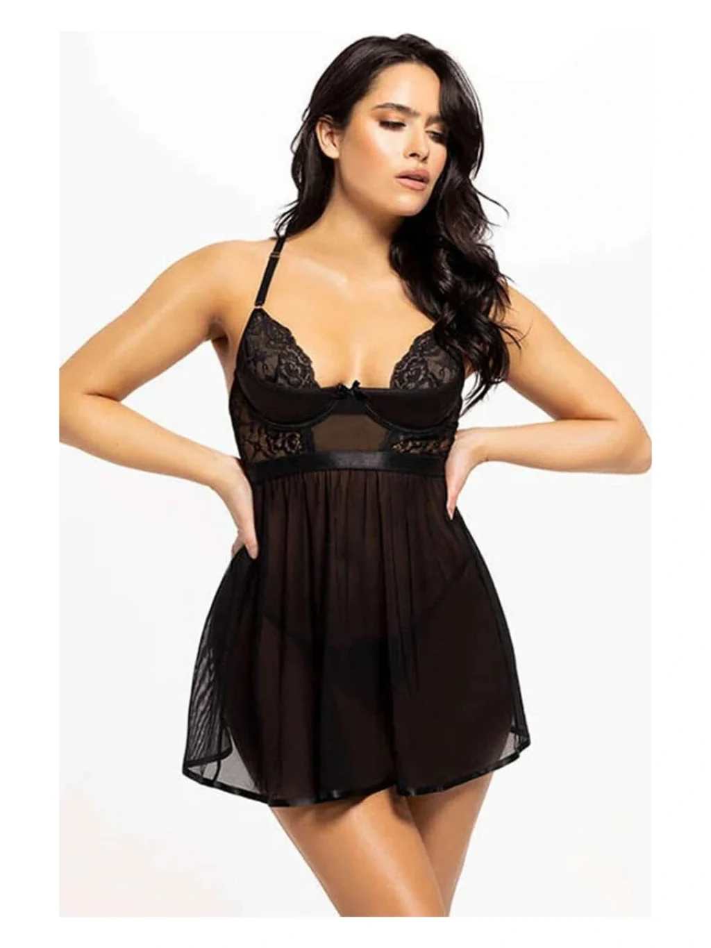 For Dreams 9107 Dantel Bağcıklı Ince Askılı Transparan Gecelik