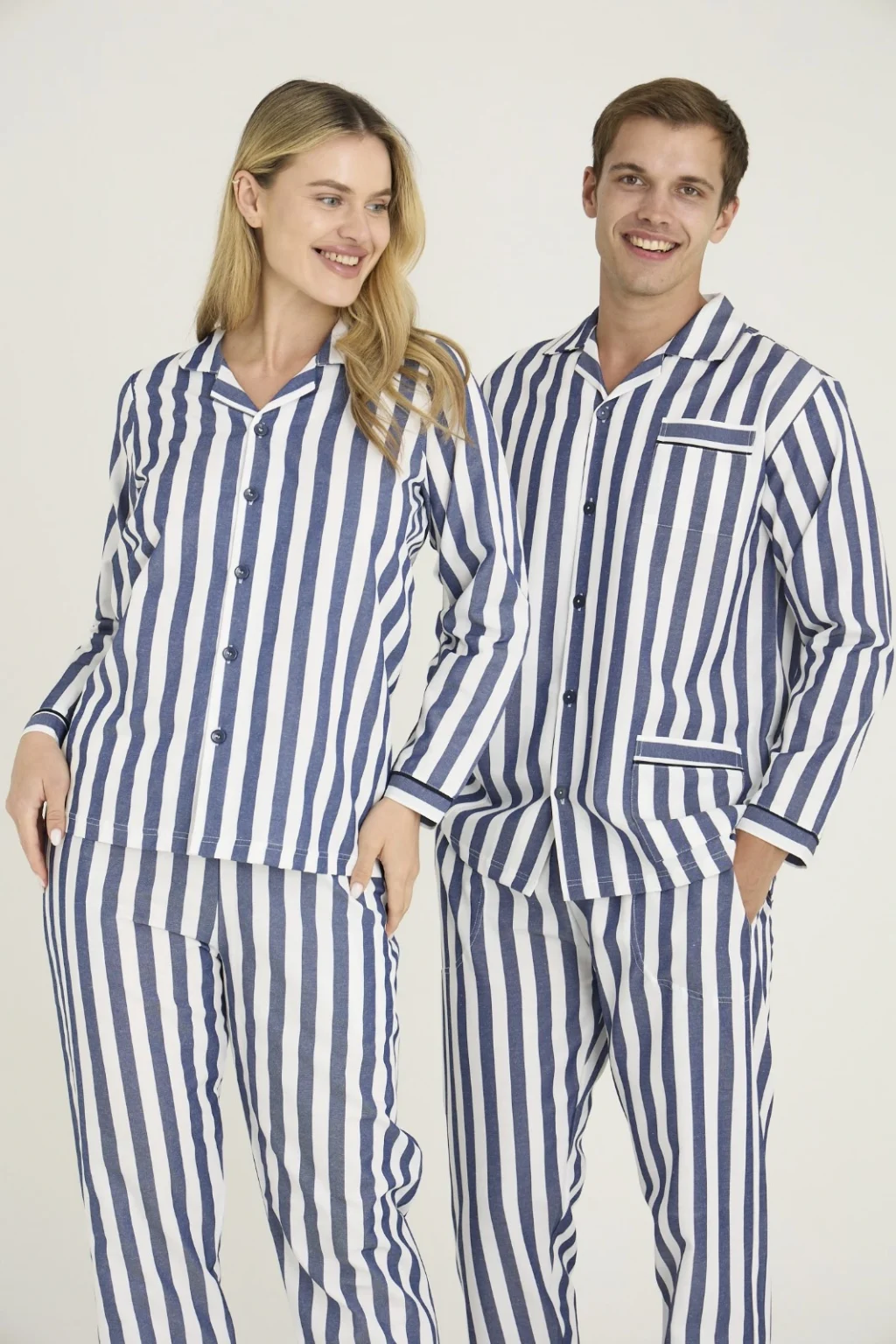 Kocabey 4007 Mavi Gaffur & Gaffuriye Çizgili Poplin Çift Pijama Takımı