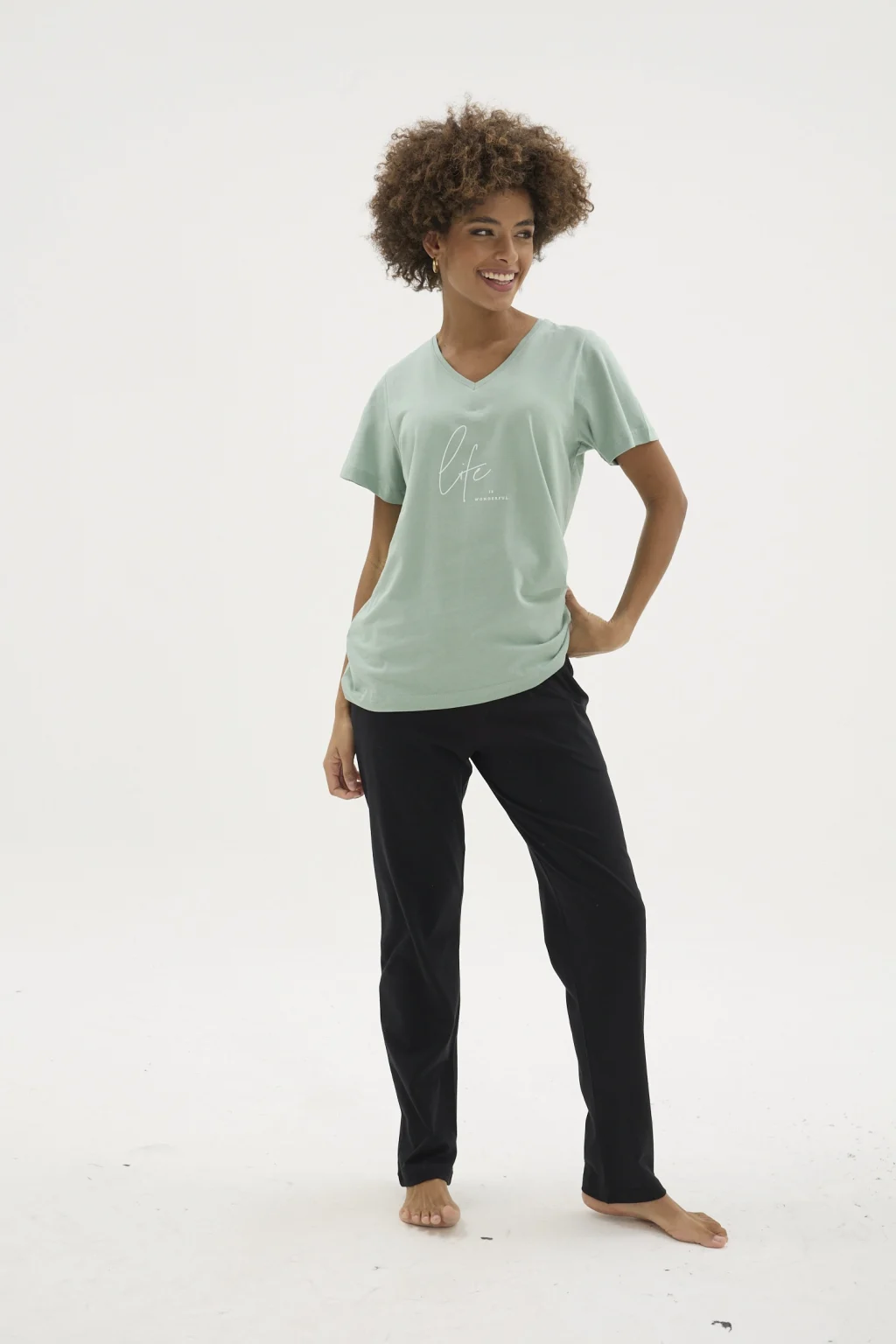 Kocabey KKT-26152K Kadın V Yaka Pijama Takımı