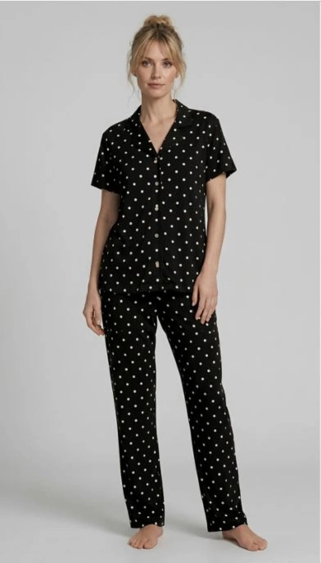 Les Boutons LB 1004 Kadın Düğmeli Kısa Kol Pijama Takımı