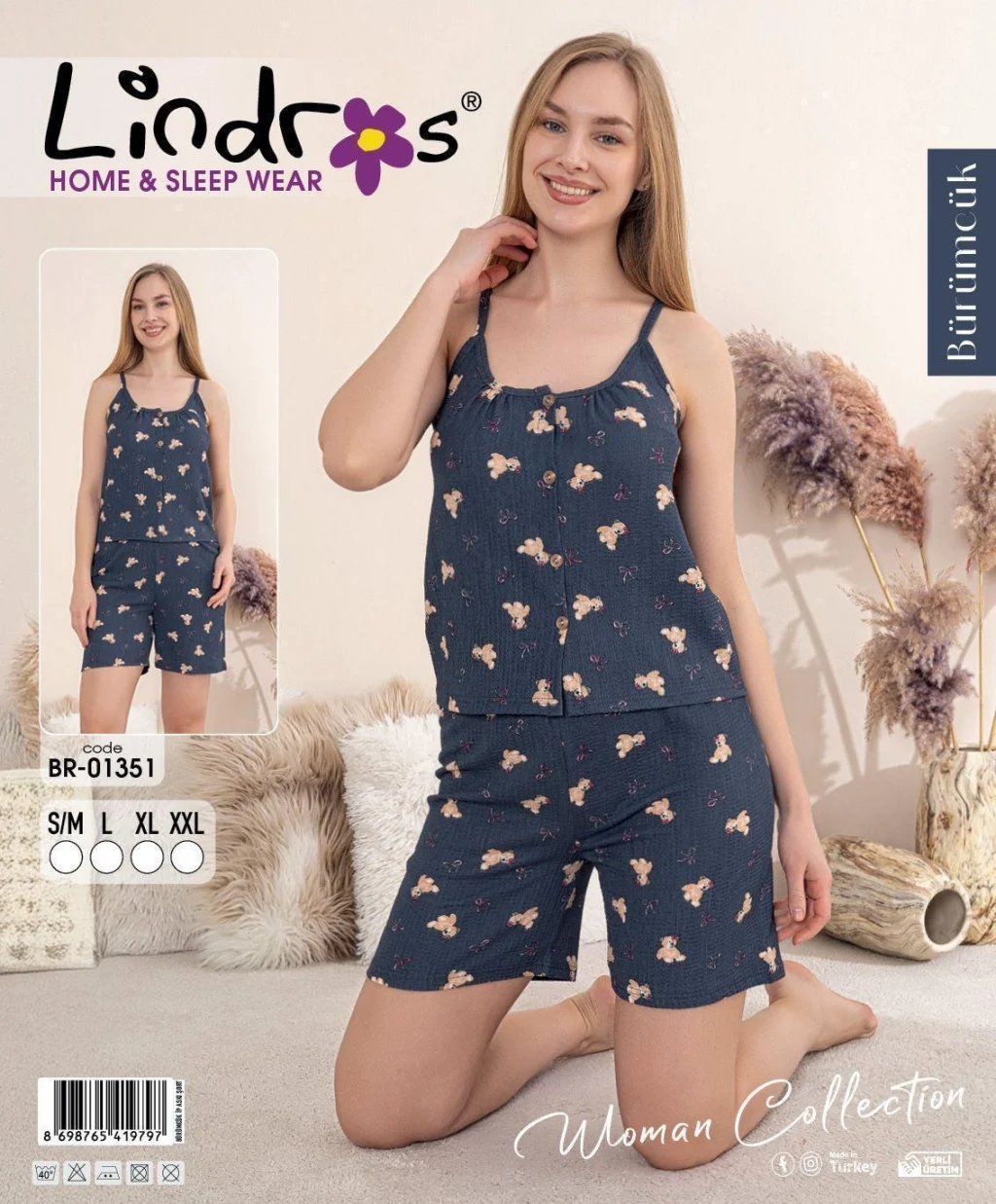Lindros BR-01351 Kadın İp ASkılı Bürümcük Düğmeli Şort Takım