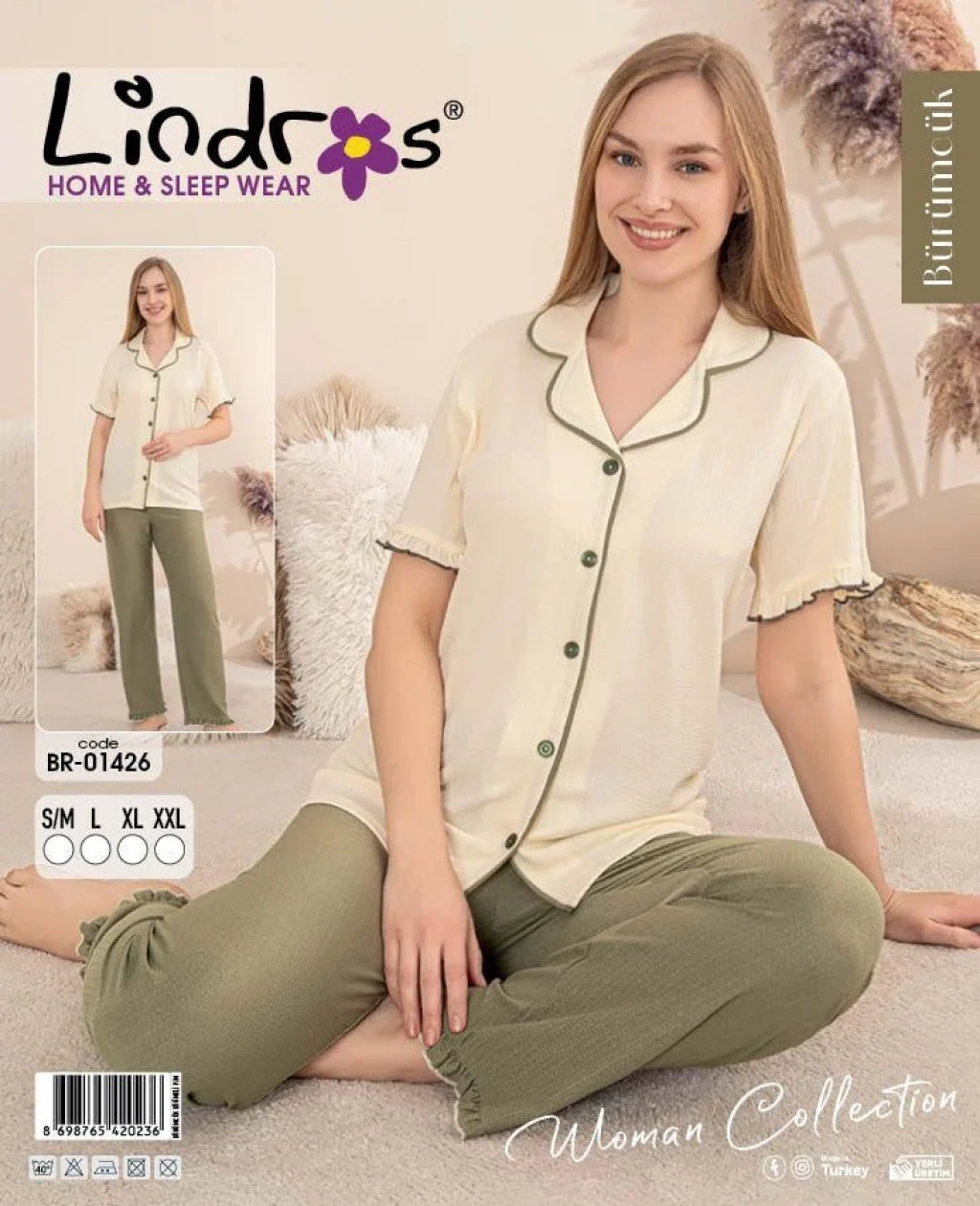 Lindros BR-01426 Kadın Kısa Kollu Bürümcük Pijama Takımı