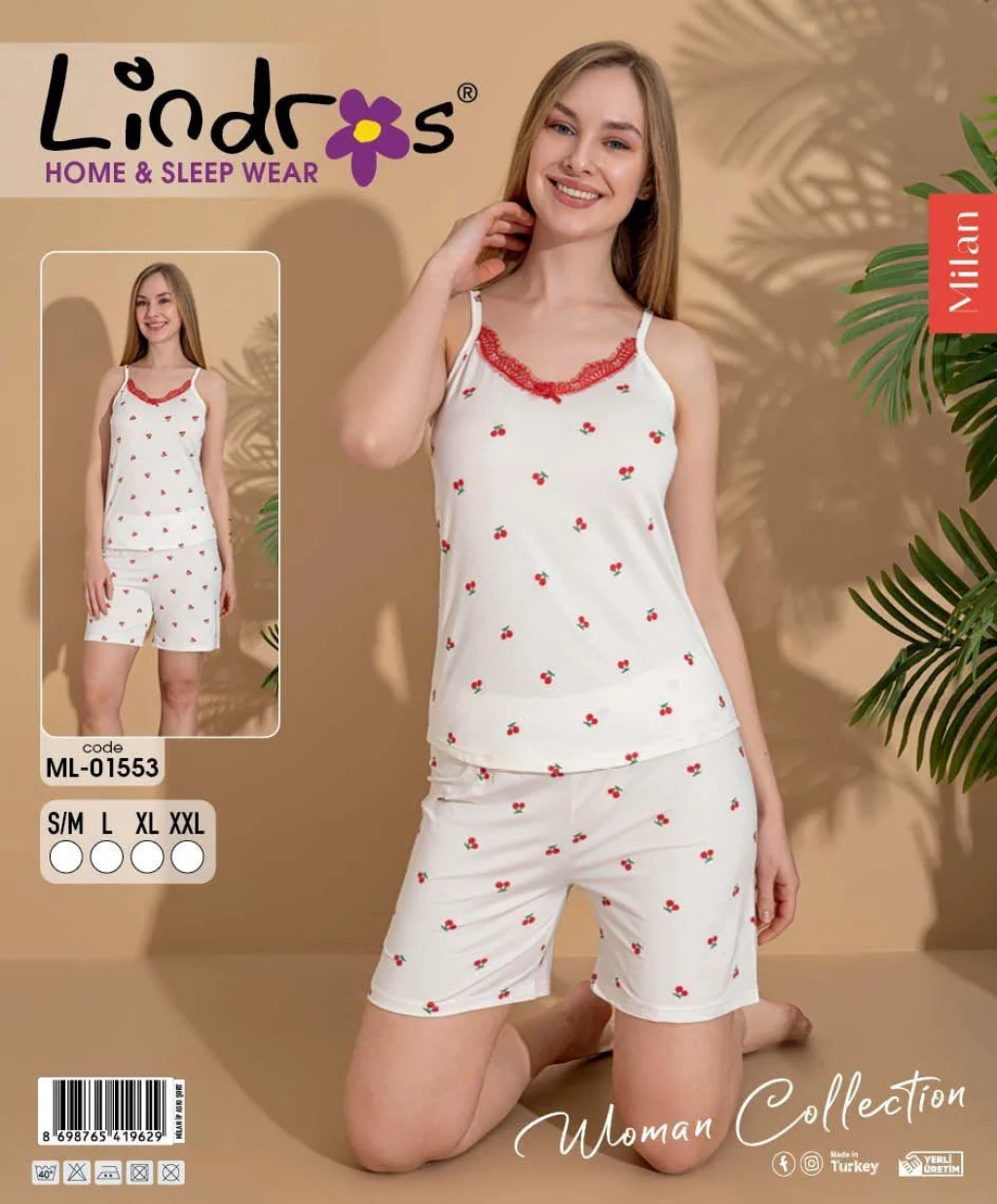 Lindros ML-01902 Kadın İp Askılı Şortlu Takım