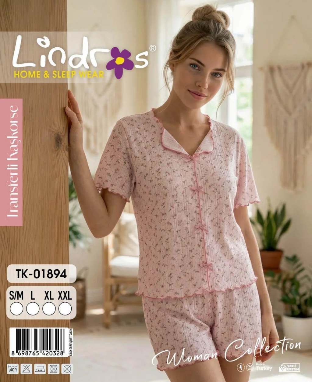 Lindros BR-01426 Kadın Kısa Kollu Bürümcük Pijama Takımı