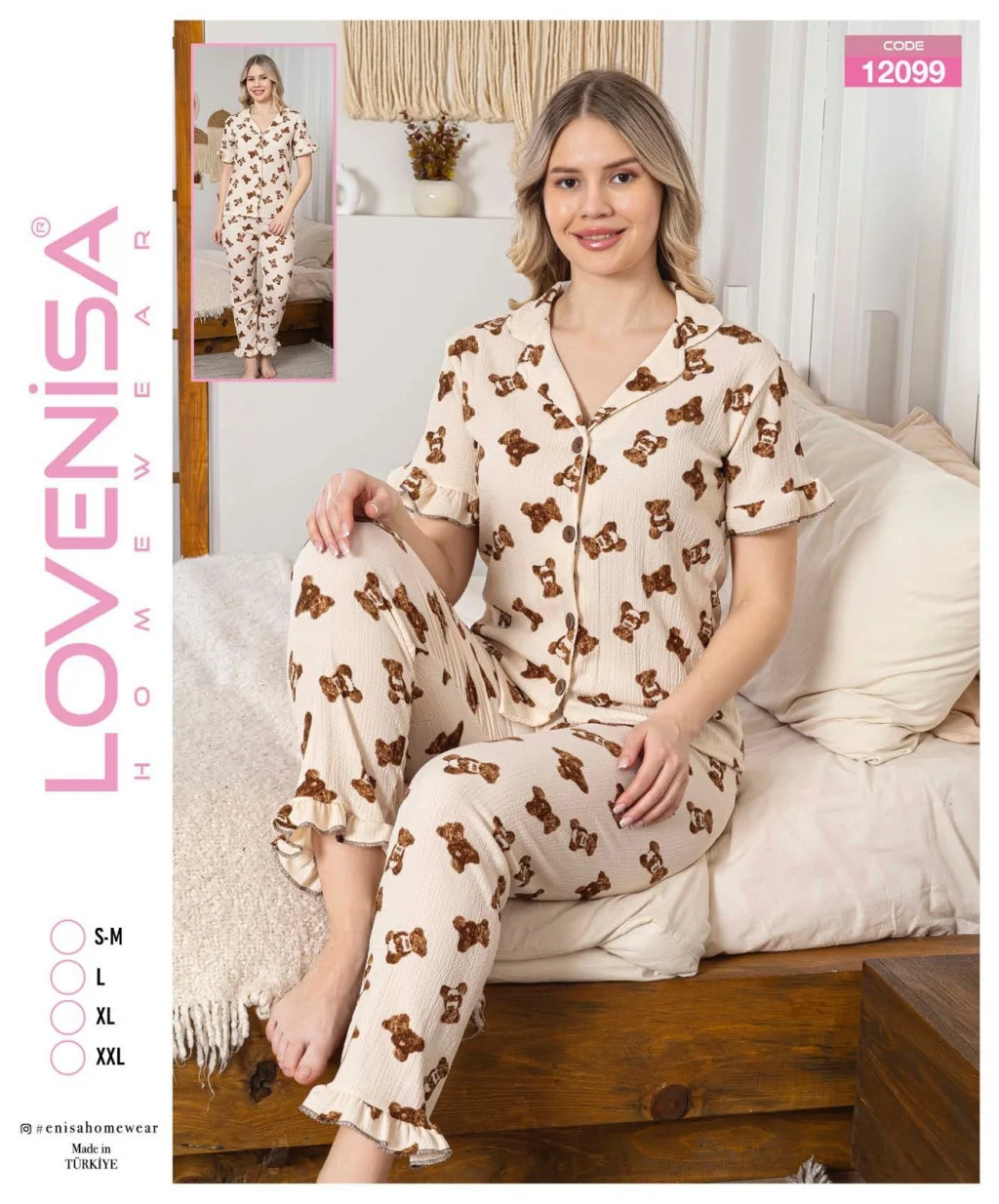 Lovenisa 12101 Kadın Bürümcük Düğmeli Pijama Takımı