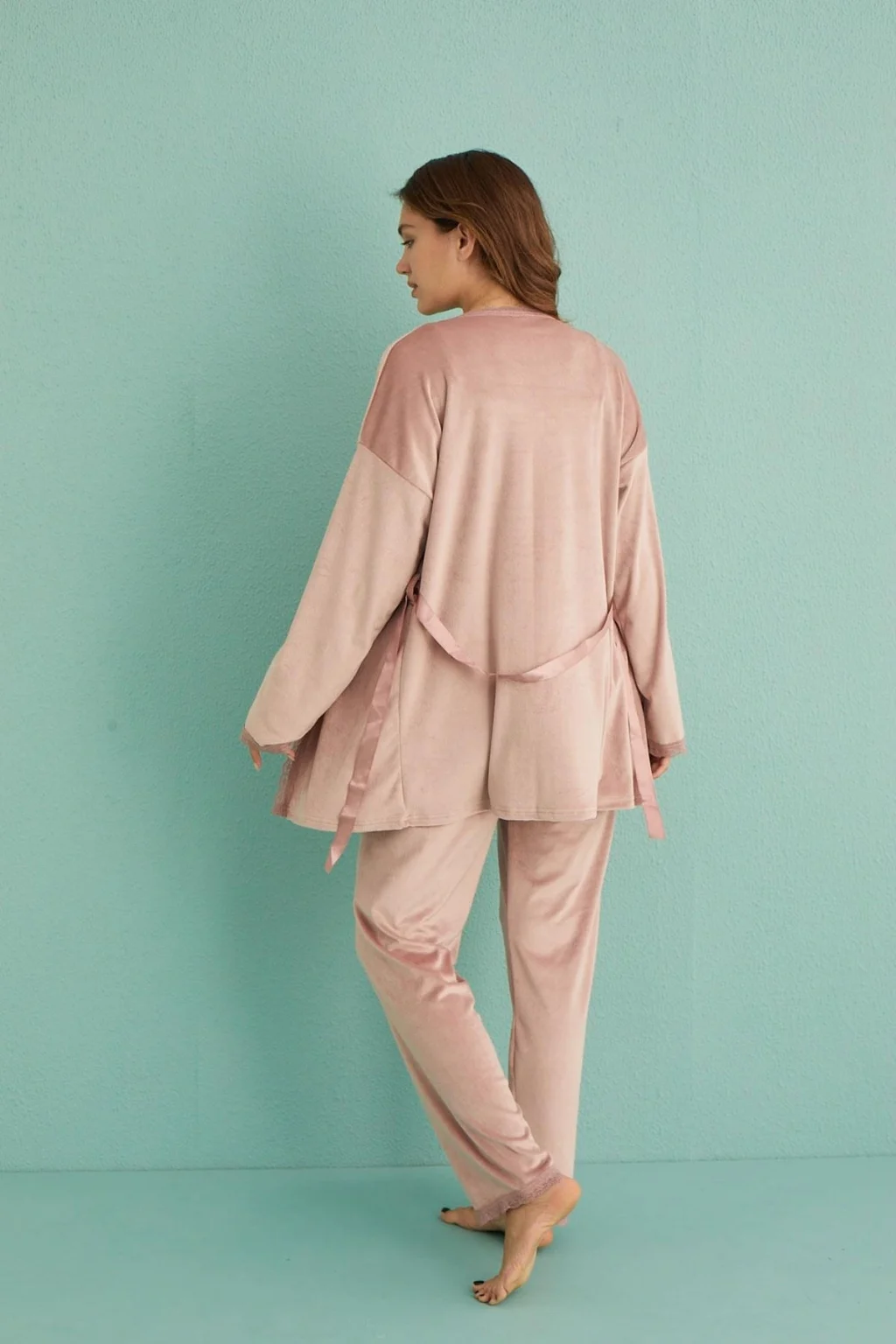 Mihra 13402 Kadın Kadife 3'Lü Pijama Takımı