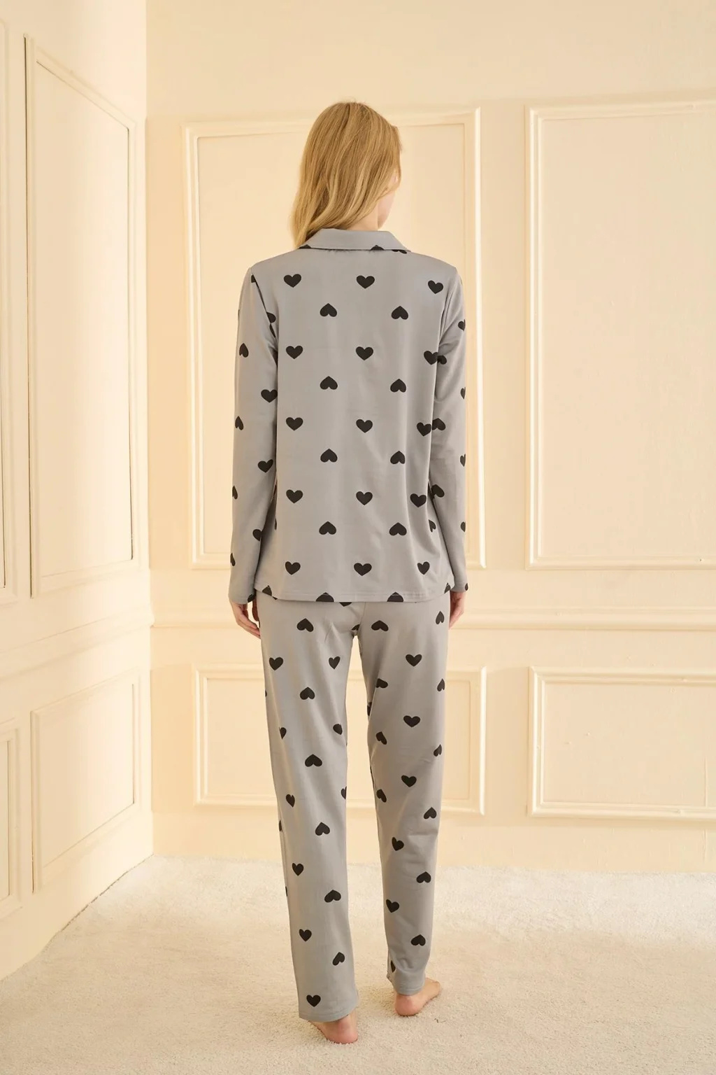 Mihra 19103 Kadın Düğmeli Uzun Kol Pijama Takımı