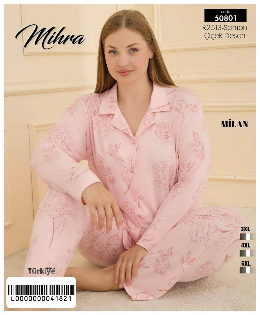 Mihra 50801 Kadın Düğmeli Battal Pijama Takımı