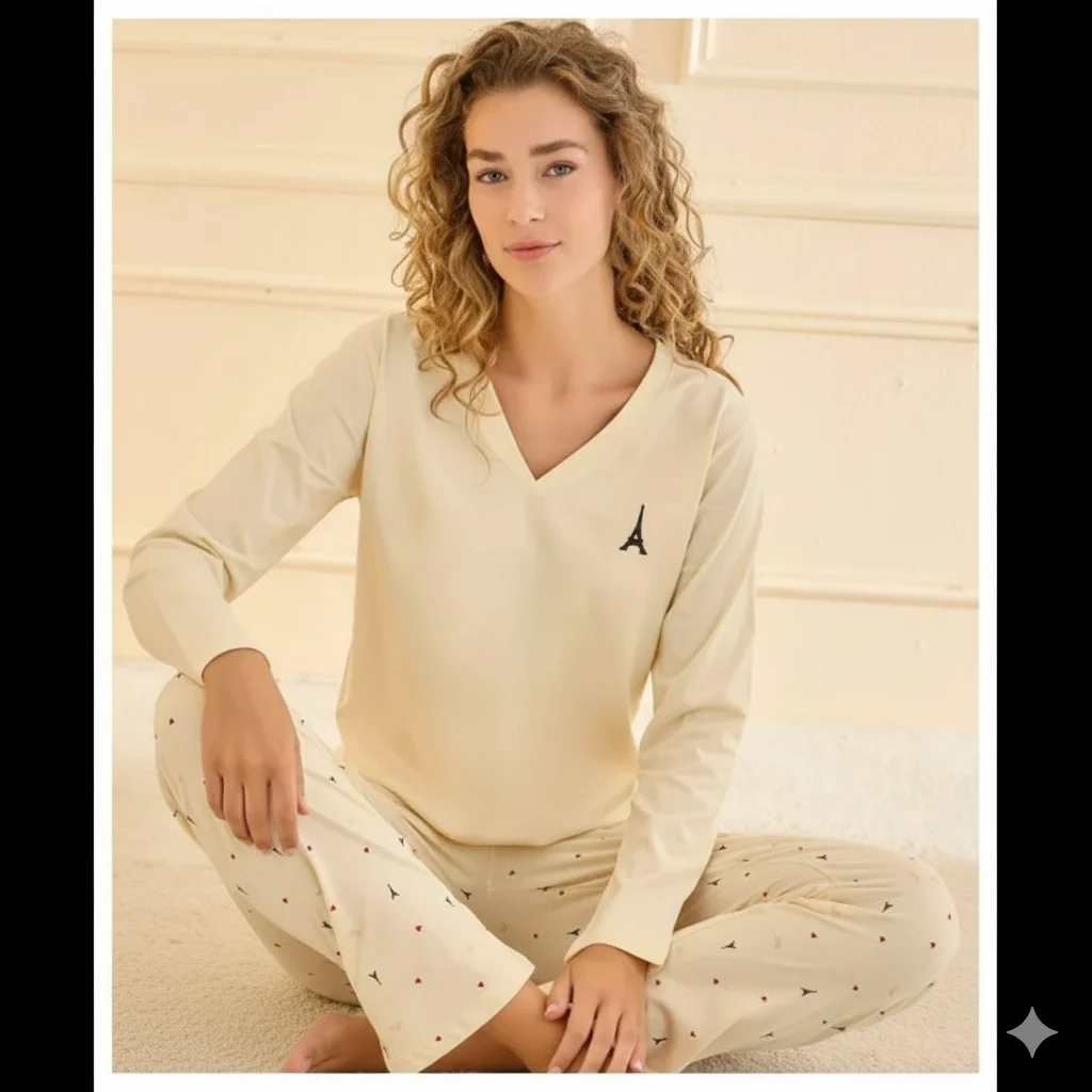 Mihra 90759 Kadın V Yaka Uzun Kol Pijama Takımı