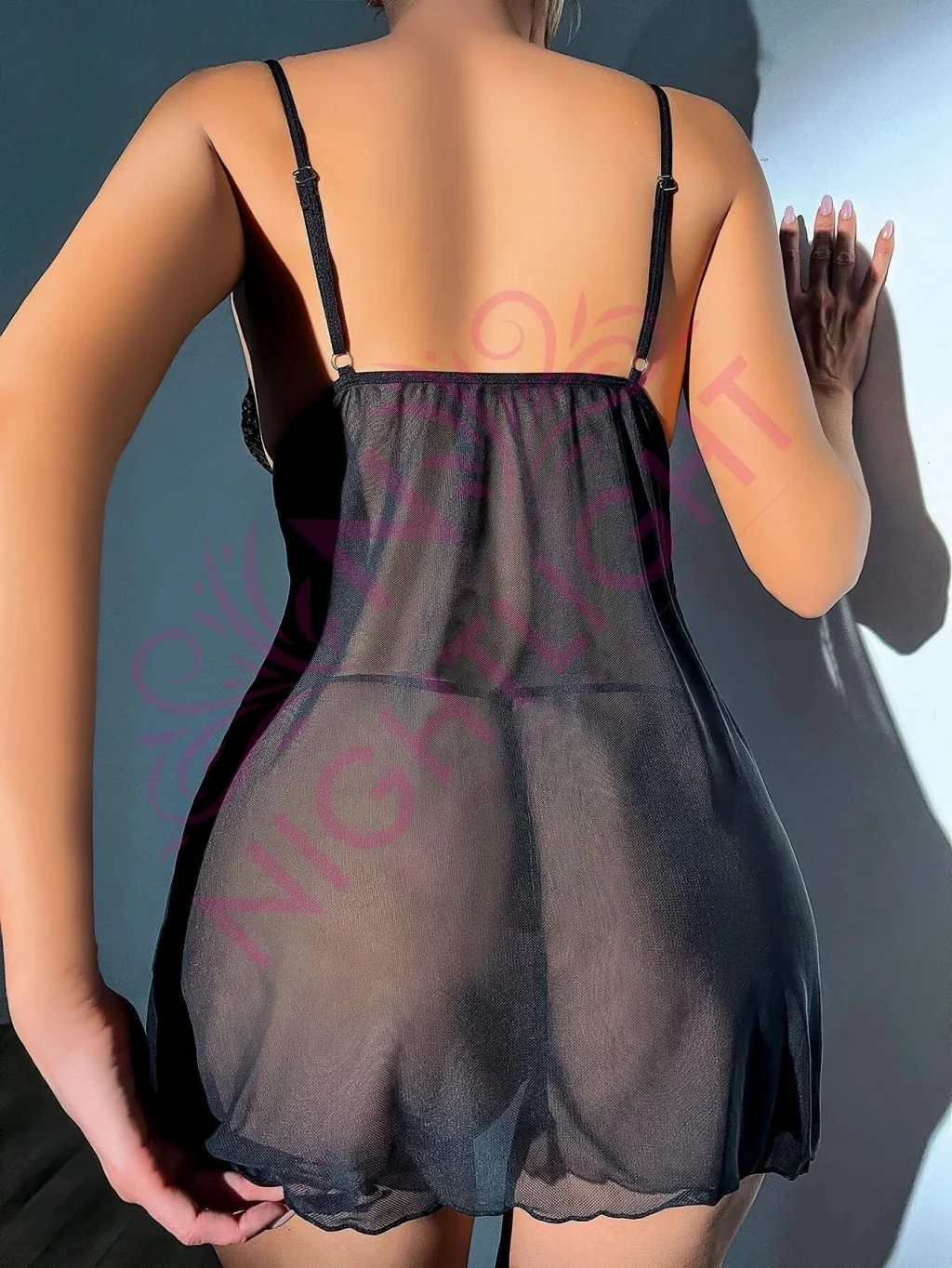 Nightlight 7007 Dantel Göğüs Kısmı Dantel Yırtmaçlı Mini Gecelik