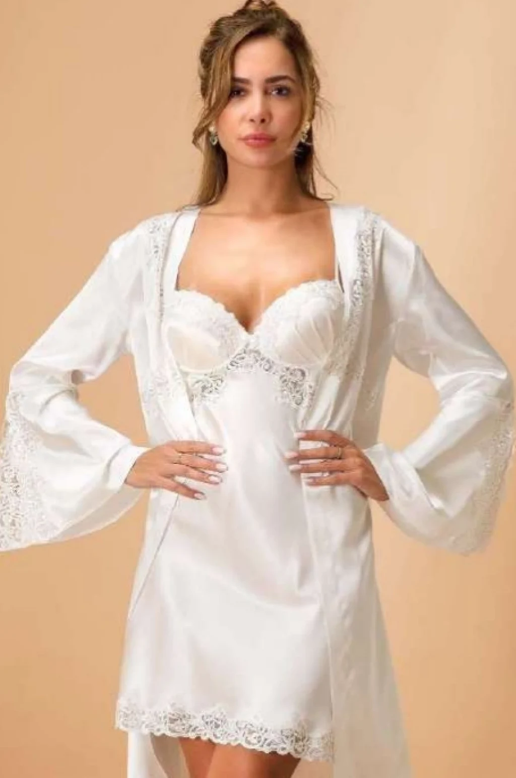 Nurteks 5344 Kadın Saten Gecelik Ve Sabahlık Takımı