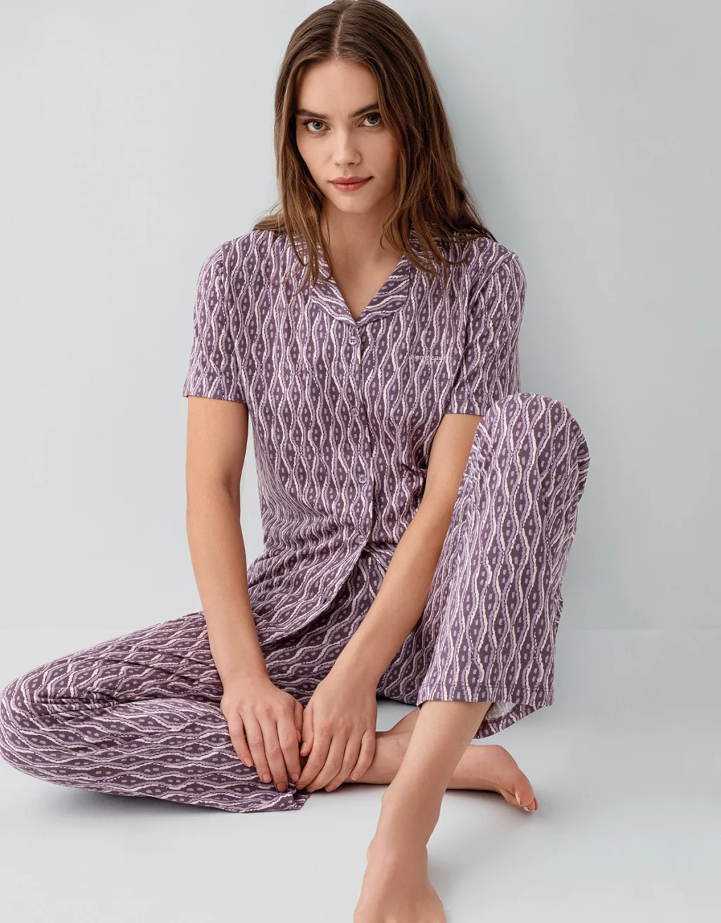 Anıl 11709 Kadın Kısa Kol Tencel Kumaş Desenli Pijama Takımı