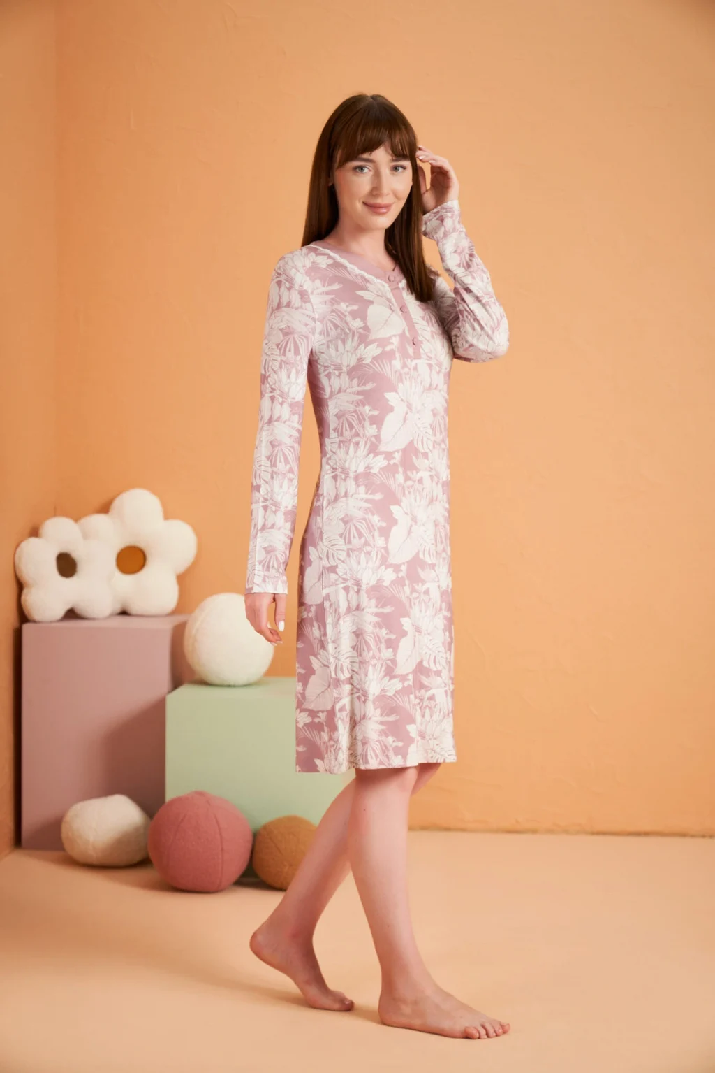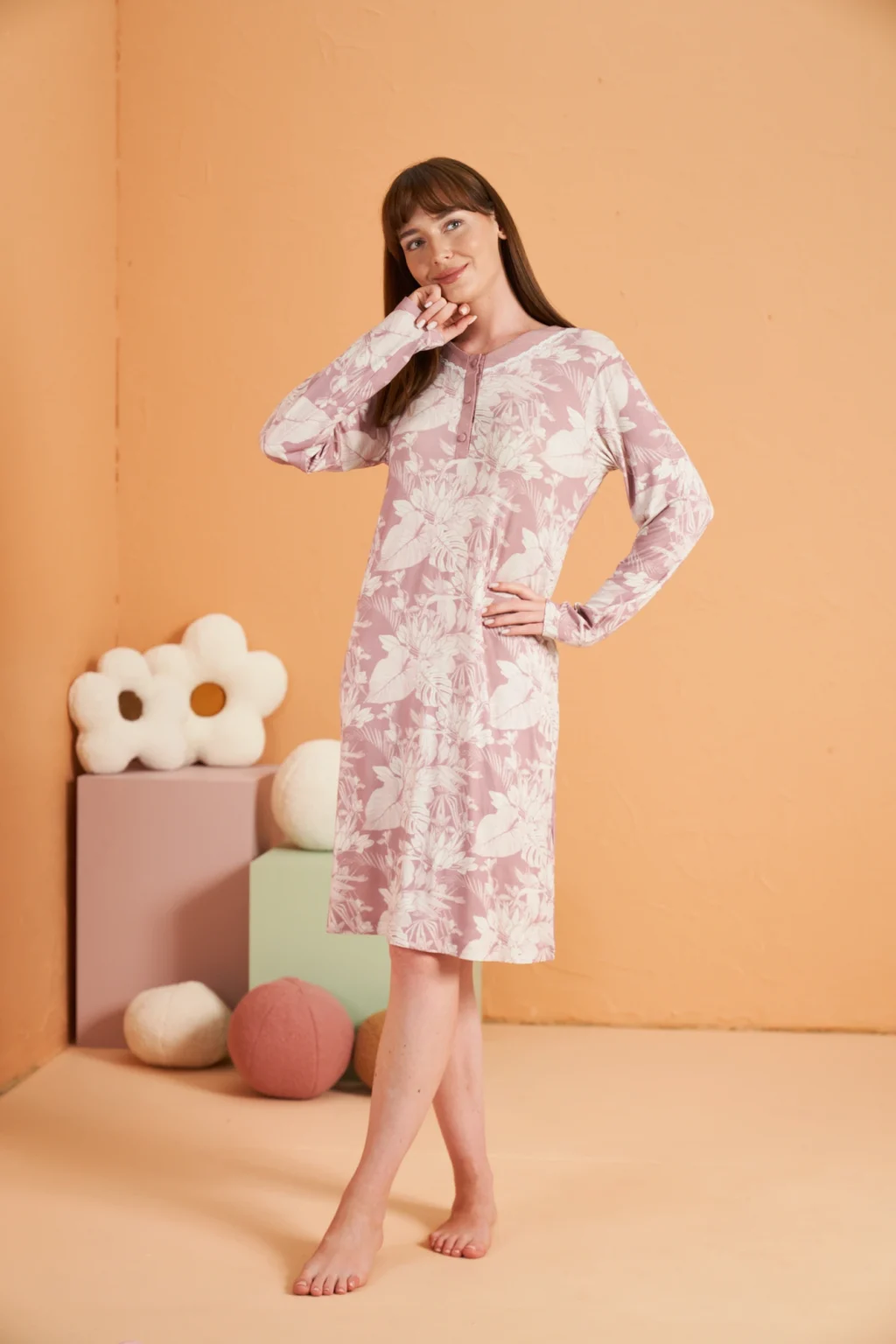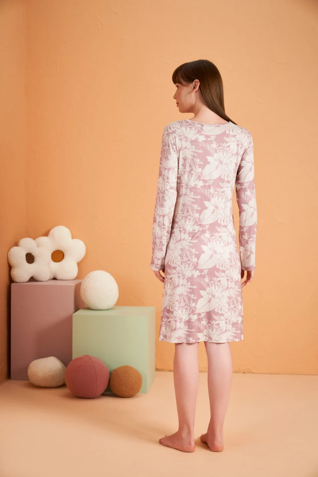 PJS 28019 Kadın Uzun Kol Desenli Gecelik