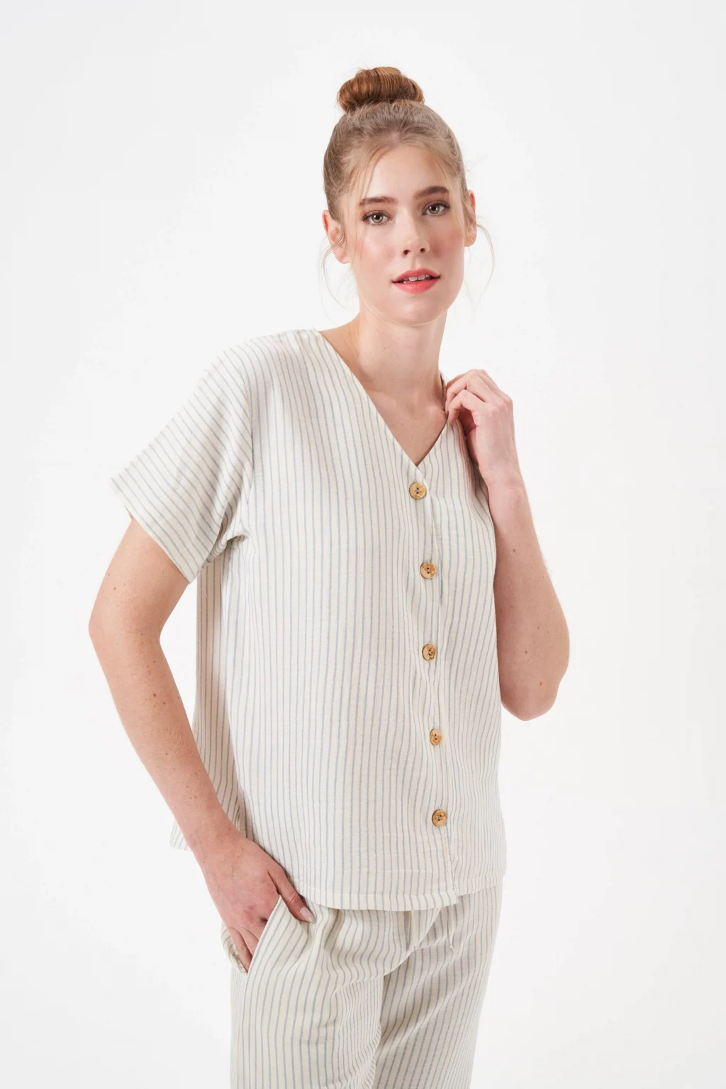 PJS 27079 Kadın Düğmeli Pijama Takımı