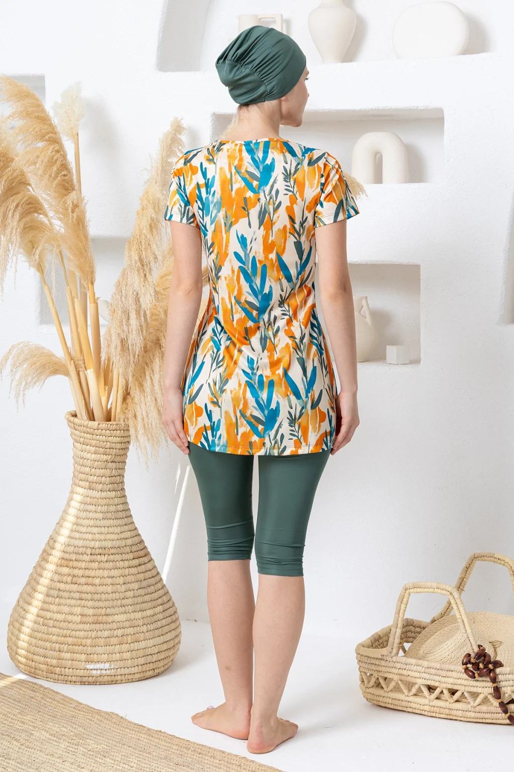 Adasea 1601 Anda Likralı Yarım Kollu Tesettür Mayo
